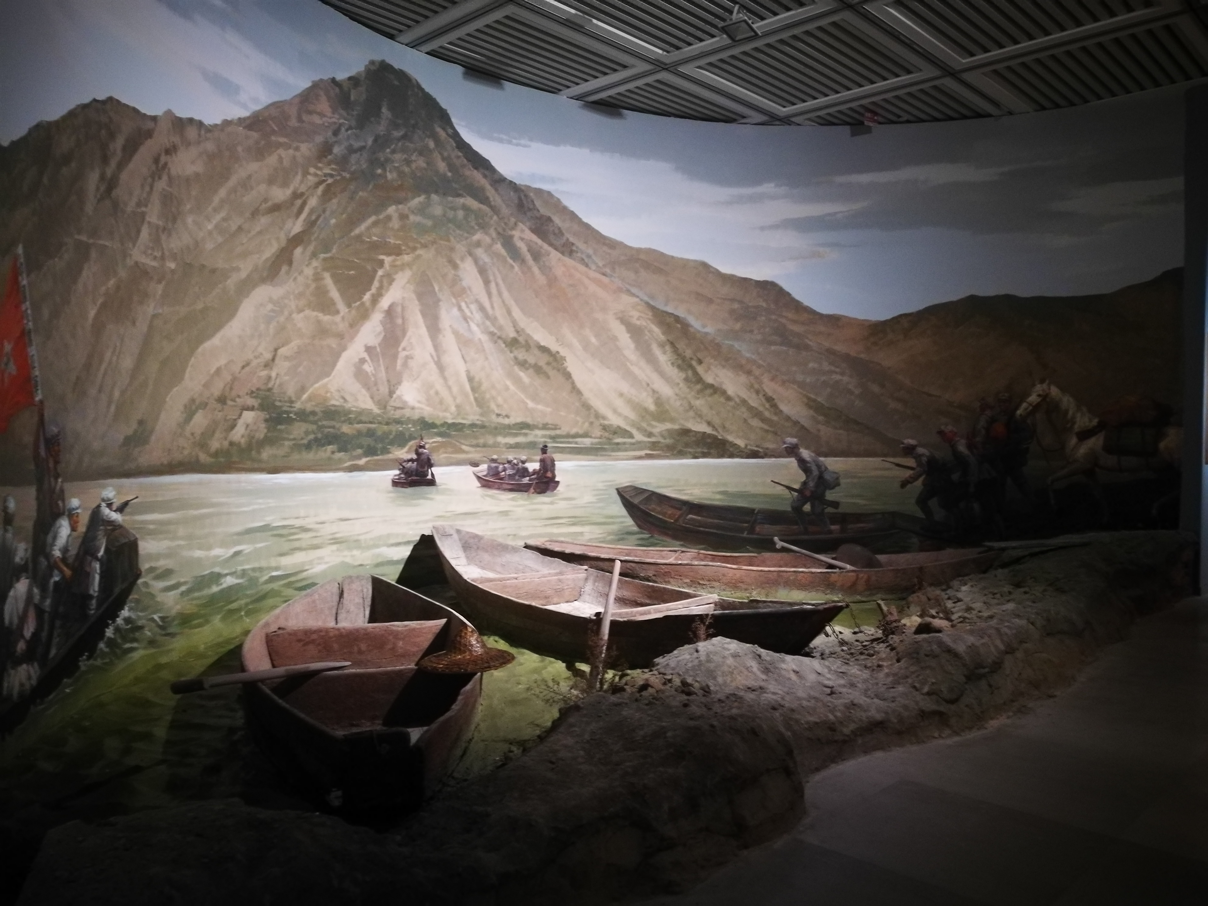 搶渡金沙江——紅軍在準(zhǔn)備渡江之際,蔣介石令龍?jiān)茖⒏鞫煽诘亩纱?、木板等渡江器具材料悉?shù)鑿沉燒毀……后來(lái),在皎平渡37名船工的幫助下,紅軍主力軍渡過(guò)了金沙江。