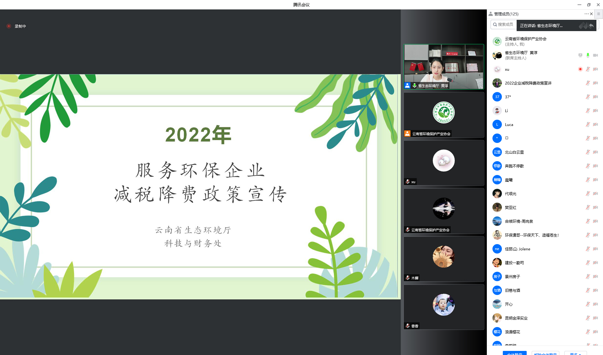 為深入貫徹黨中央國(guó)務(wù)院穩(wěn)住宏觀經(jīng)濟(jì)大盤(pán)的系列部署,積極助力企業(yè)紓困,服務(wù)環(huán)保企業(yè),云南省生態(tài)環(huán)境廳聯(lián)合云南省環(huán)境保護(hù)產(chǎn)業(yè)協(xié)會(huì)于2022年6月10日上午開(kāi)展了面向全省環(huán)保企業(yè)的減稅降費(fèi)政策宣講活動(dòng),云南省生態(tài)環(huán)境廳科技與財(cái)務(wù)處一級(jí)主任科員黃淳介紹了2022年新出臺(tái)的國(guó)家及云南省的相關(guān)減稅降費(fèi)政策。