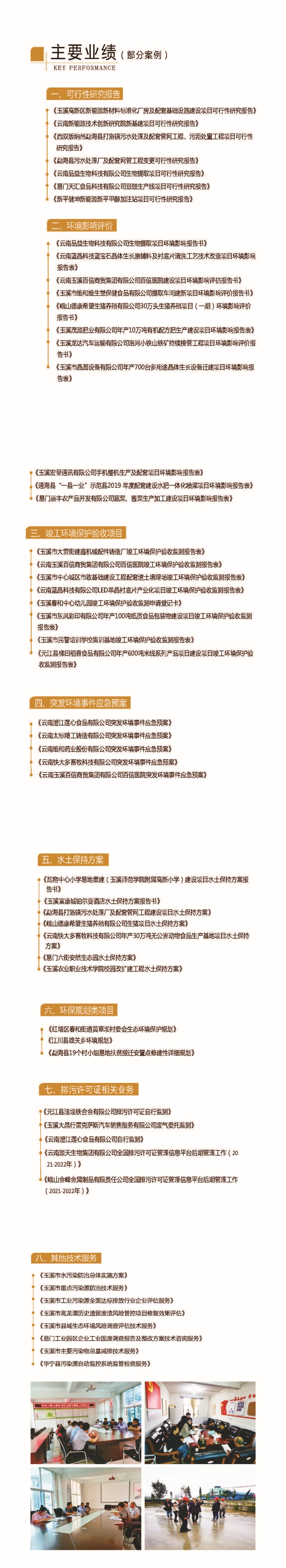 公司可承接農(nóng)村環(huán)境綜合治理、環(huán)境規(guī)劃、環(huán)境工程設(shè)計、環(huán)境影響評價、突發(fā)環(huán)境事件應(yīng)急預(yù)案、水土保持報告等方案的編制;排污許可證填報及管理;污染減排技術(shù)服務(wù)、環(huán)保管家等各項業(yè)務(wù)。項目覆蓋范圍廣,公司成立至今已承接過數(shù)百項環(huán)保技術(shù)咨詢服務(wù)項目,咨詢經(jīng)驗豐富,環(huán)保技術(shù)人才團隊實力強大。